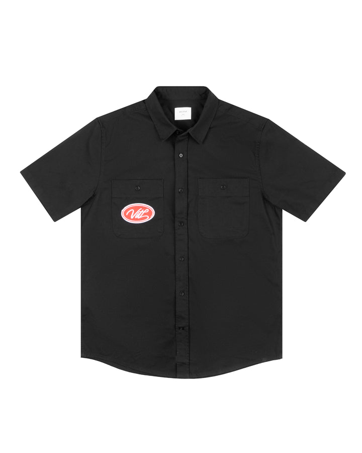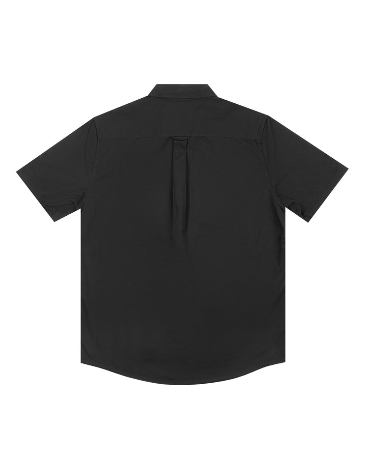 Construction: Short sleeve button up shirt, two chest pockets with pen channel, tonal buttons, side seamed, back yoke with hang loop, preshrunk to minimise shrinkage